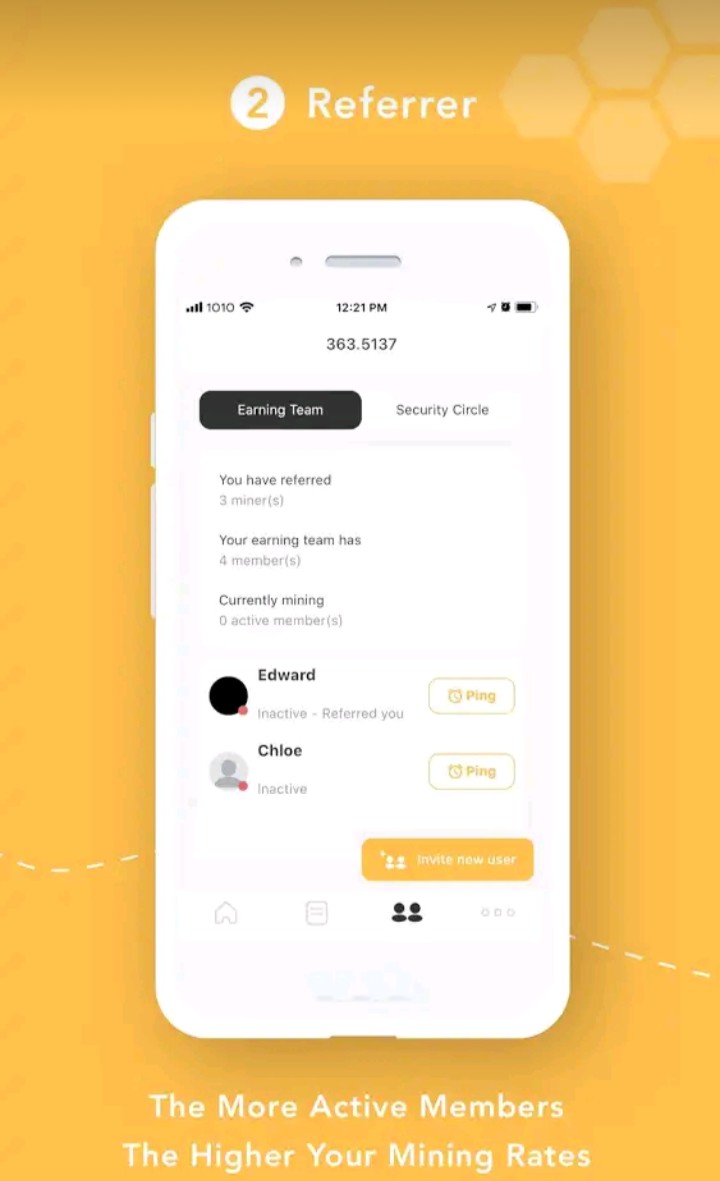 There are 3 roles on the app. There is the Miner, the Verifier and the Referrer. The network users or players would earn rewards in the game. Those rewards are bees.